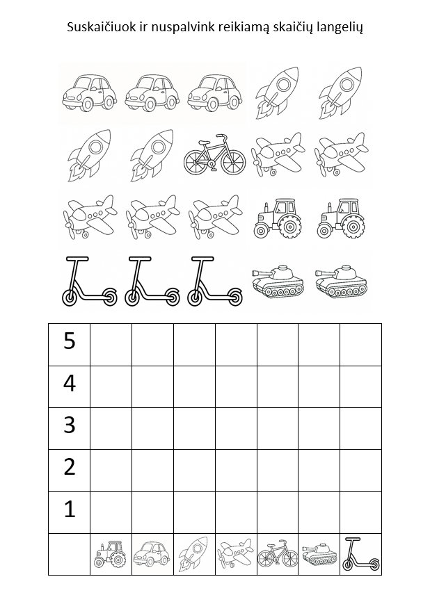 Suskaičiuok ir nuspalvink reikiamą kiekį langelių.